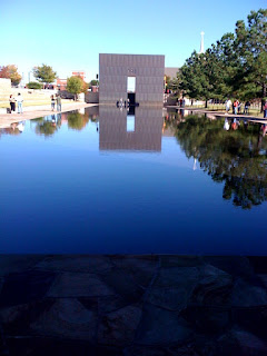 I'm at the Oklahoma City Bombing Memorial, it's quite sobering. Inside